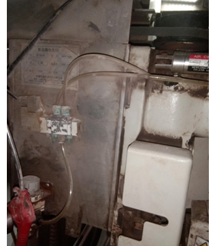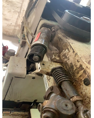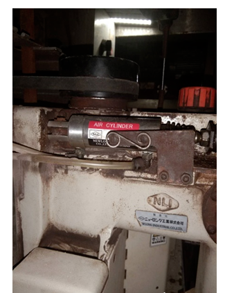 2020年08月15日15:00脱硫二号包装机缝纫机切线不动作。现场工作人员没有注意现场设备切线气缸固定螺丝松动,导致切线气缸断裂。