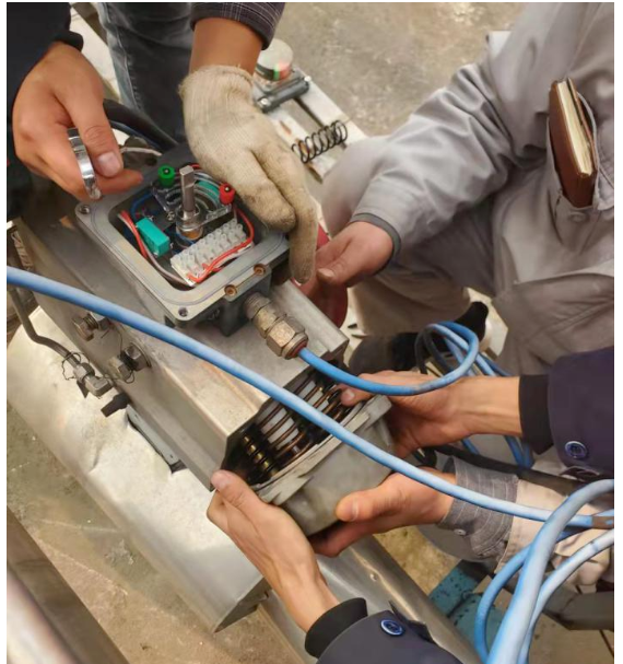 6、再次拆开气缸,将换下来的两组旧弹簧也一起装上,回装阀门,通知工艺人员远程开关阀门,关阀时有点卡涩,但已经可以关到位。用手轮反复开关几次,并让工艺人员远程多开关几次,卡涩现象有所好转。