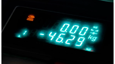 显示面板显示的重量值显示0kg( 实际料仓的料重48kg)。
